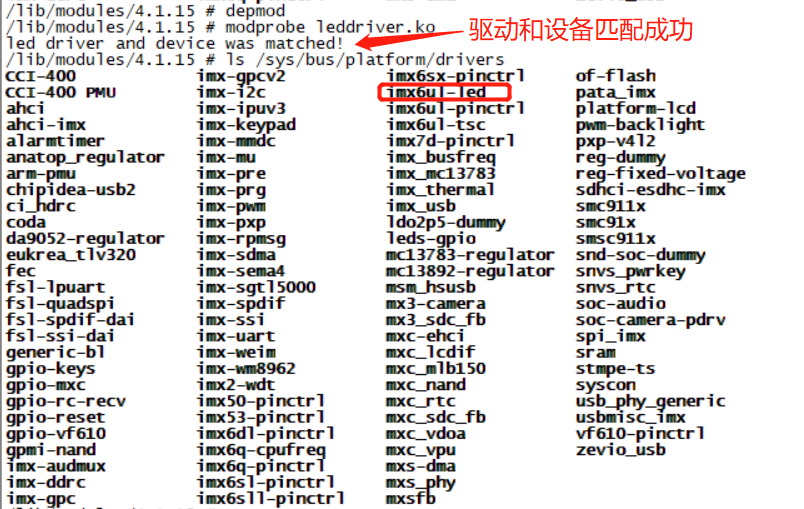 depmod //第一次加载驱动的时候需要运行此命令modprobe leddriver.ko //加载驱动模块